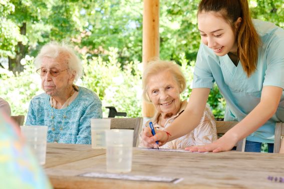 Alle Ebenen verfügen über jahreszeitlich dekorierte Aufenthaltsbereiche und Wintergärten, teils mit Fernseher und / oder CD/Radio. Hier können die Bewohnerinnen ihr Essen zu sich nehmen, sich entspannen und die Gemeinschaft genießen. Auch die psychosoziale Betreuung findet hier zu unterschiedlichen Zeiten statt.